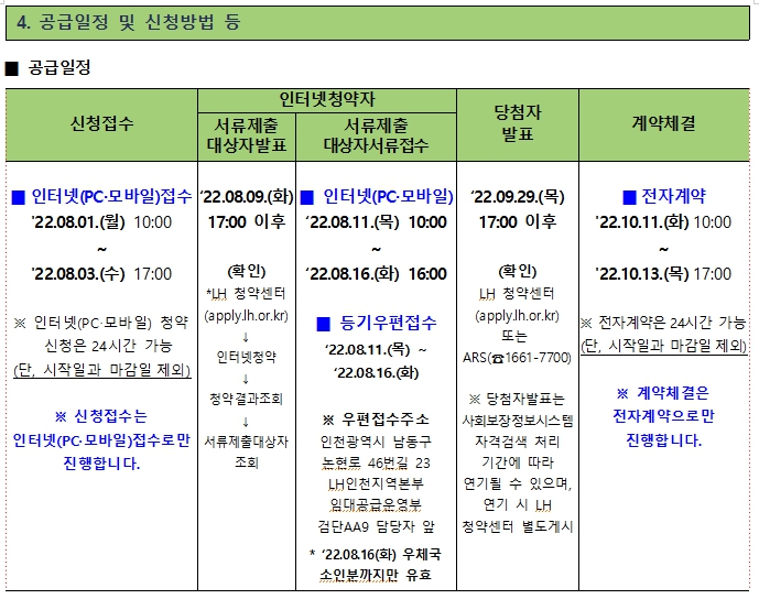 - 인터넷 청약 서류 제출 대상자 서류 접수 : 22.08.11~08.16